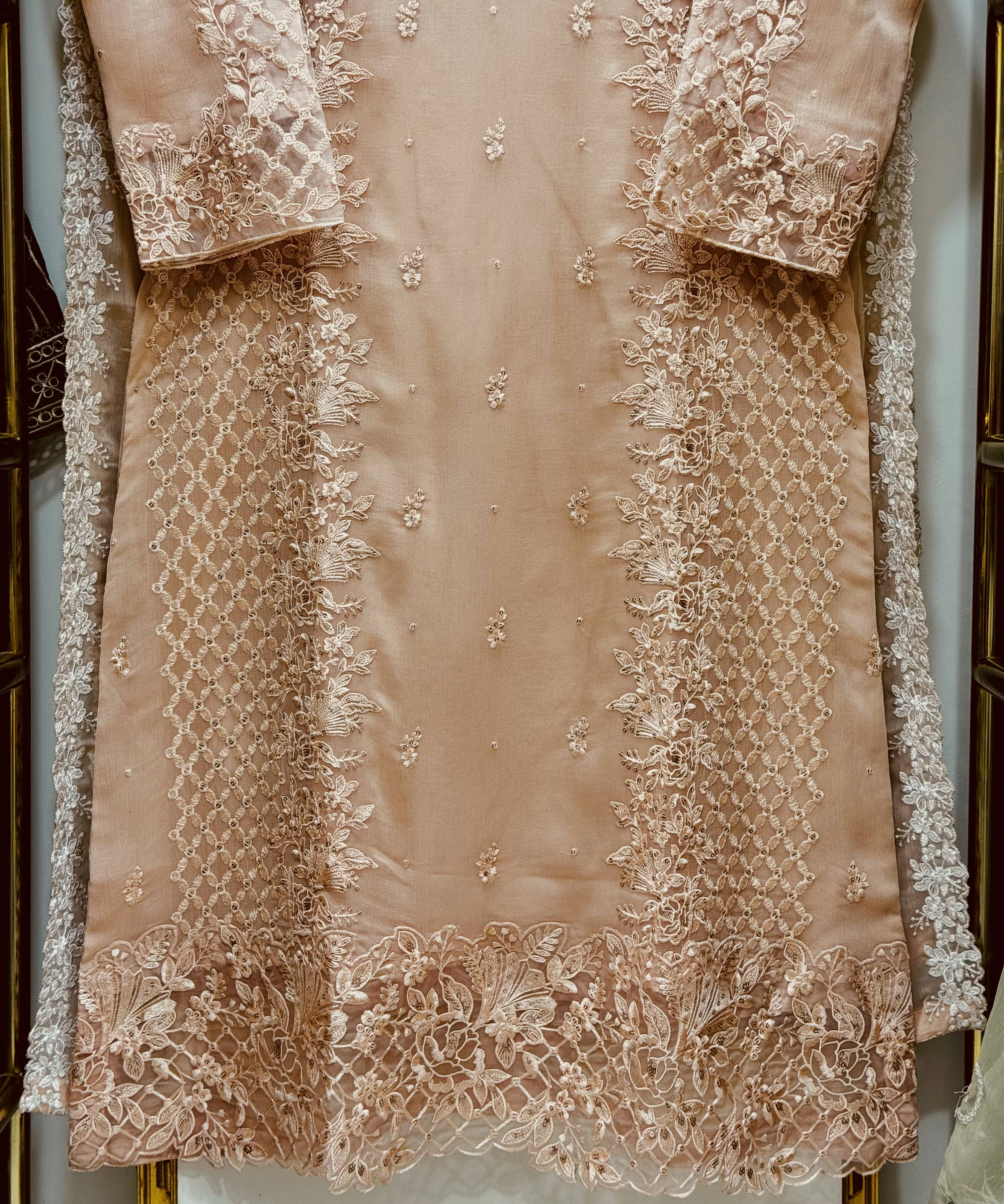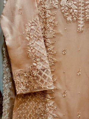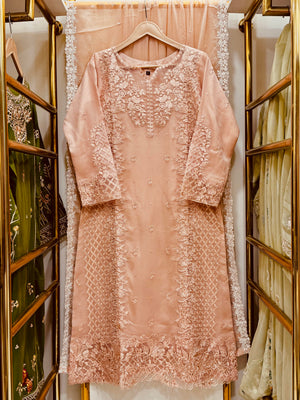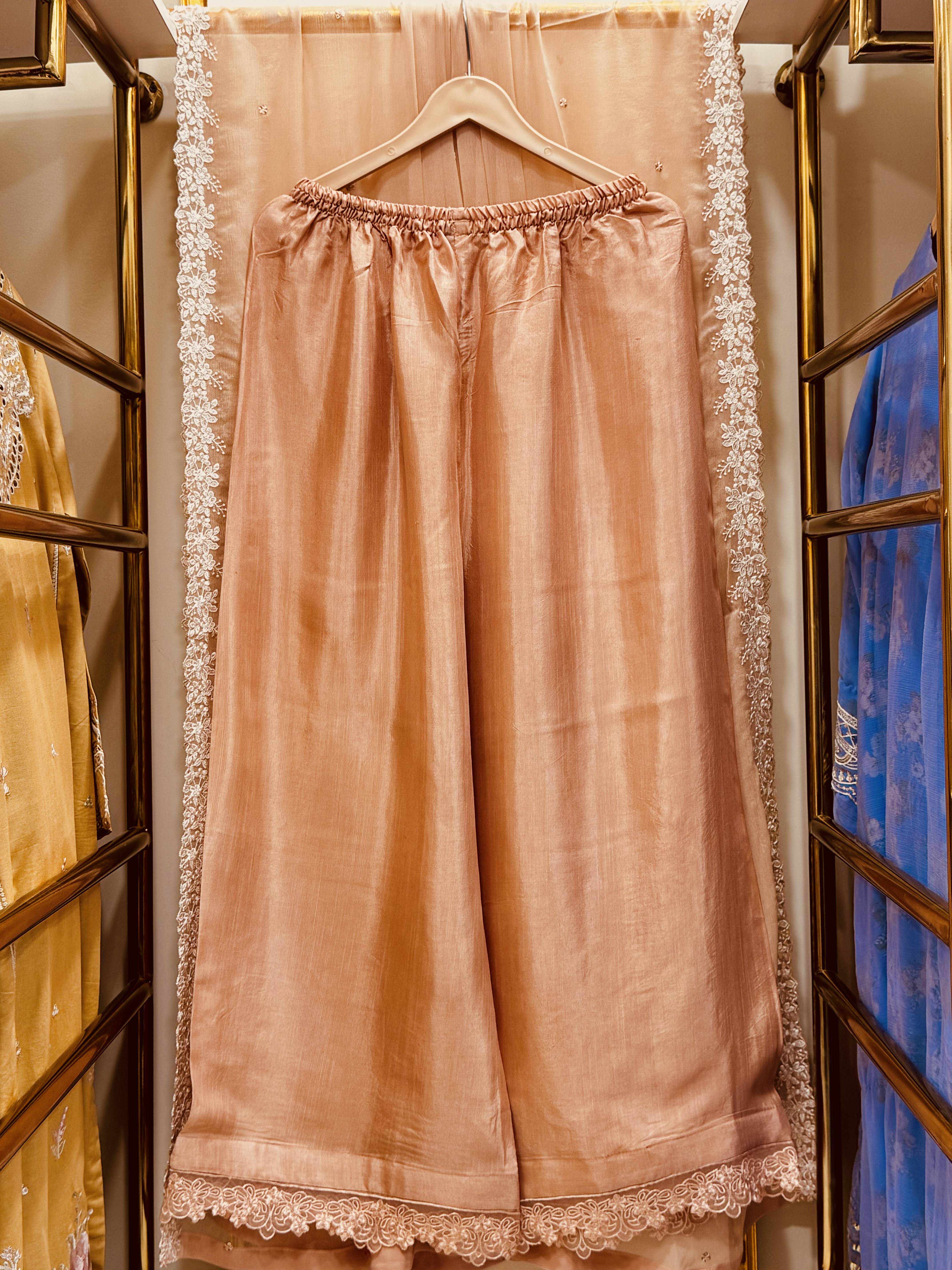 Experience pure elegance with our Chiffon 3-Piece Collection featuring luxurious RowSilk inner & trouser, heavy embroidery, and premium cutwork detailing.