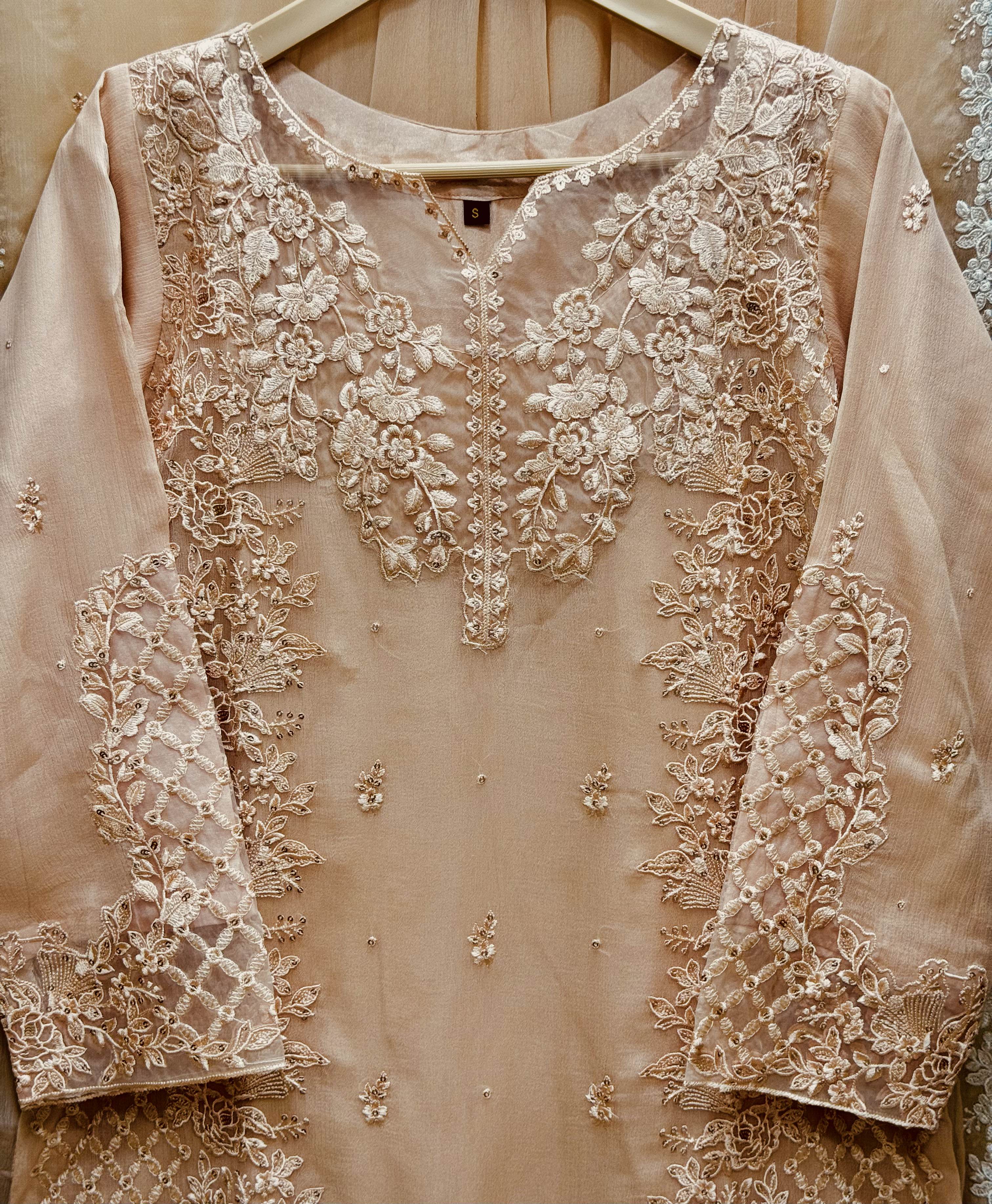 Shirt: Chiffon Fully Heavy Embroidered Applique Neck, Daman Border & Sleeves