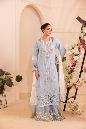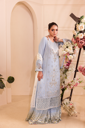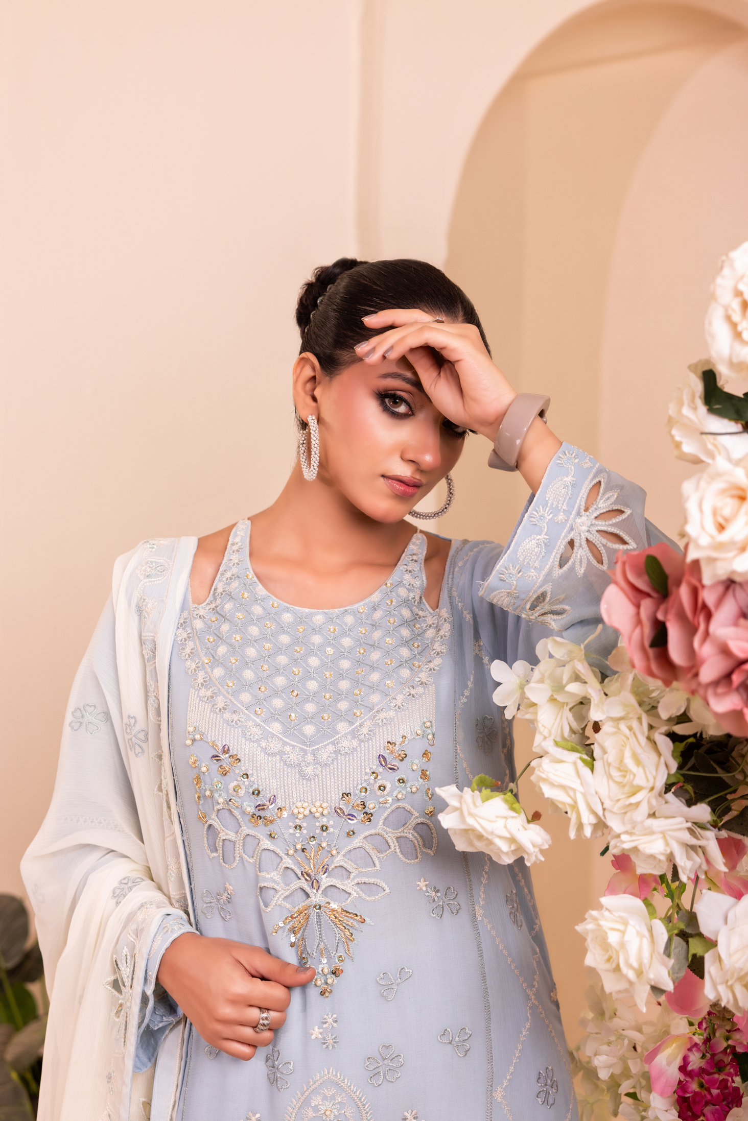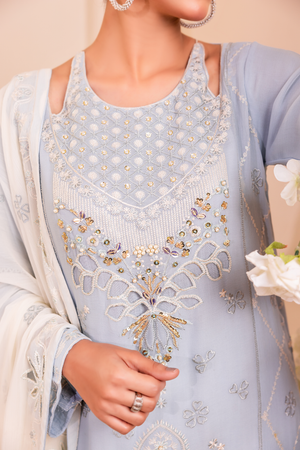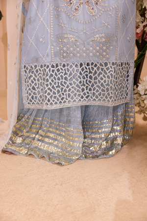 Chiffon Heavy Front Back Embroidery With Classy HandWork And Gota Work