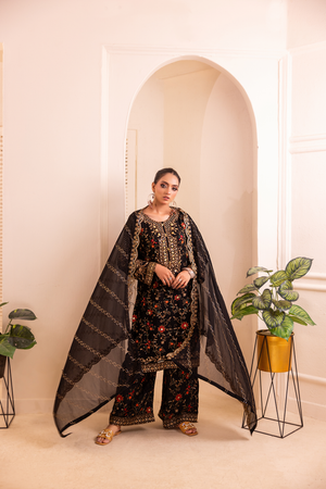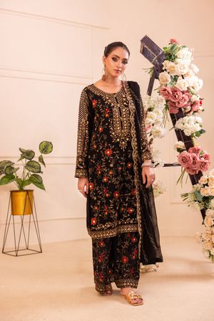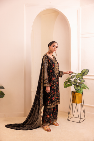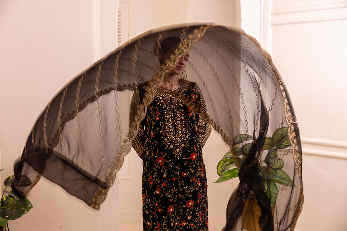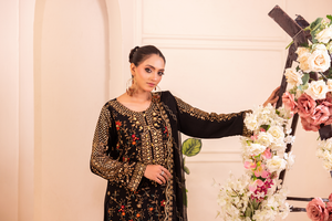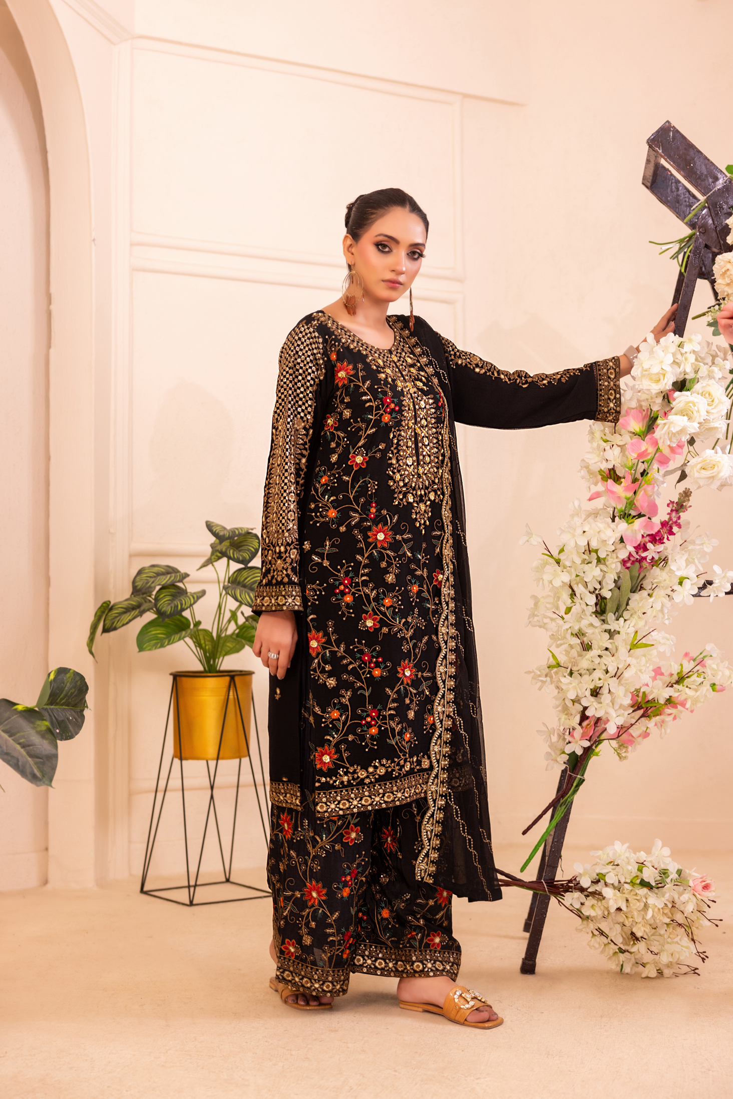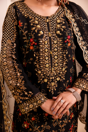 Chiffon Heavy Front Back Embroidery With Classy HandWork And Gota Work