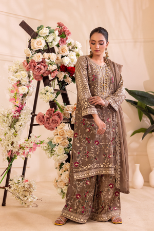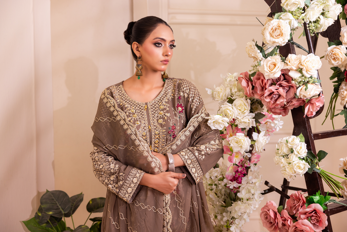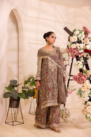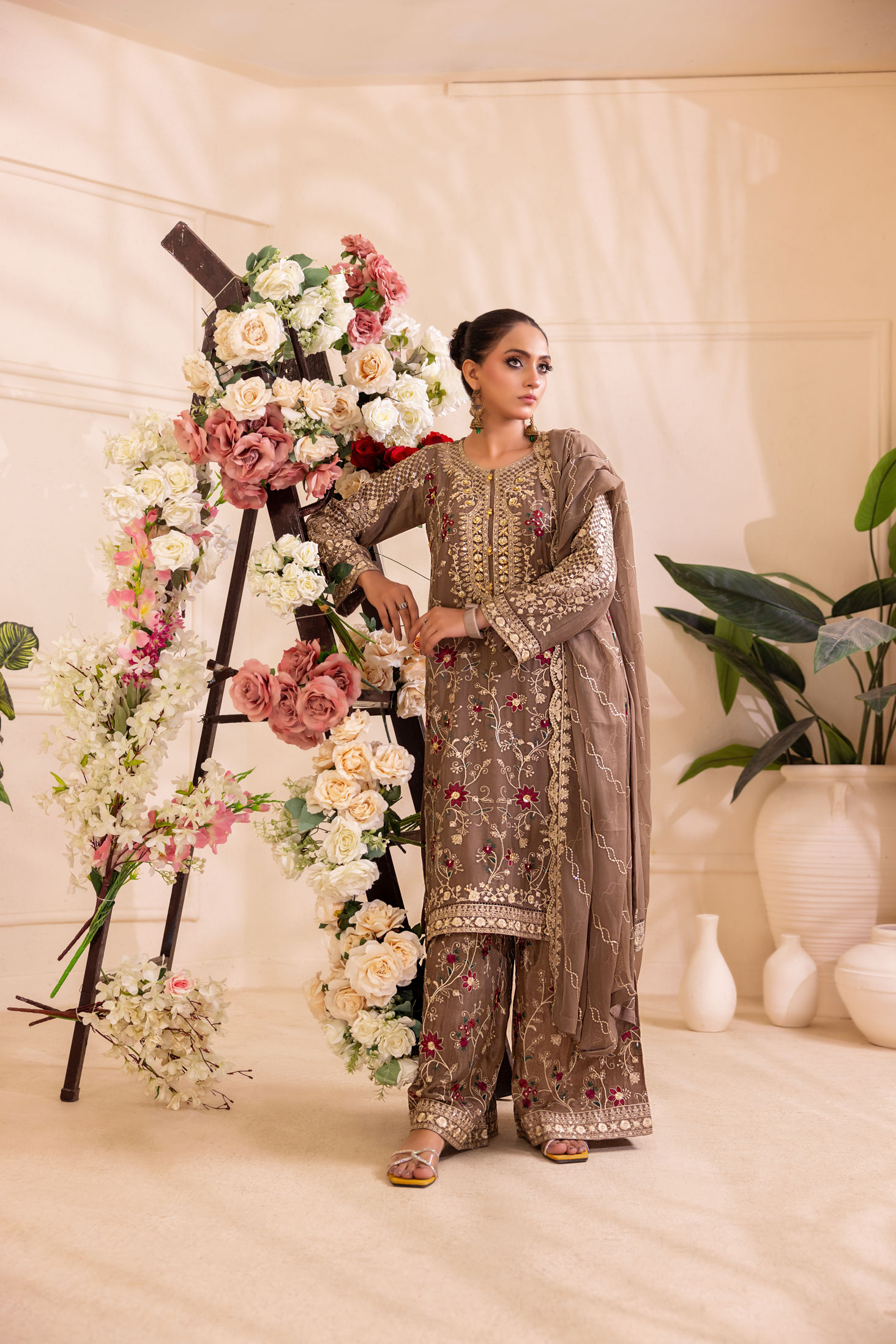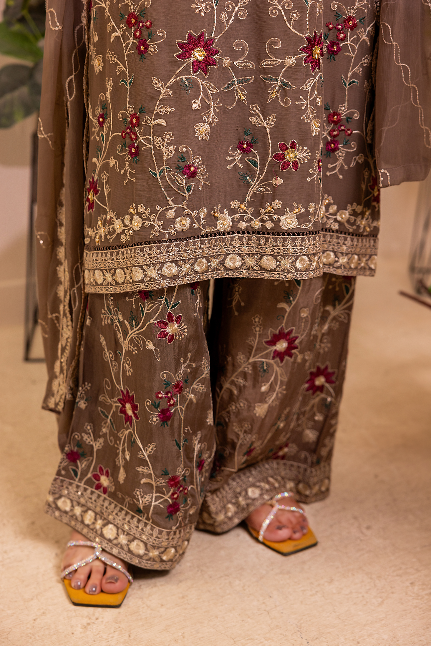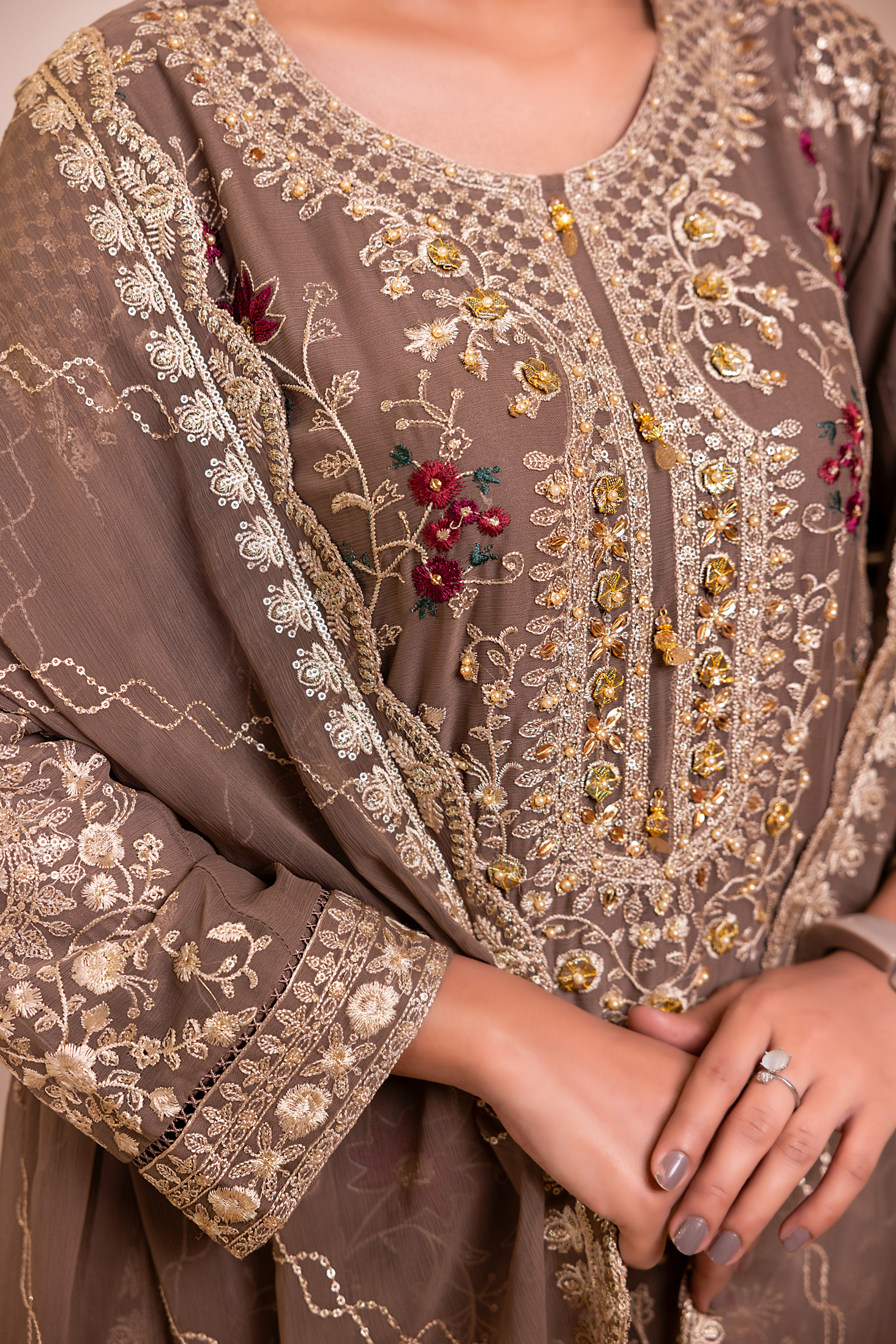 Chiffon Heavy Front Back Embroidery With Classy HandWork And Gota Work