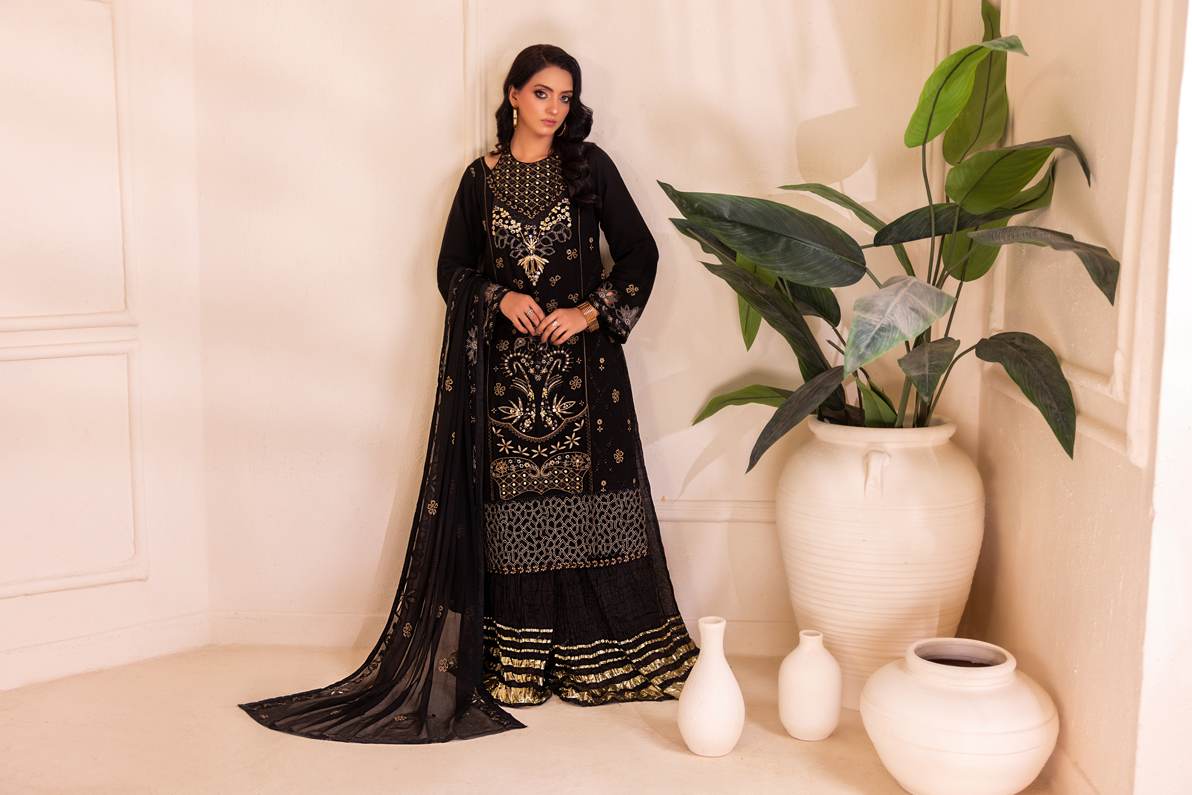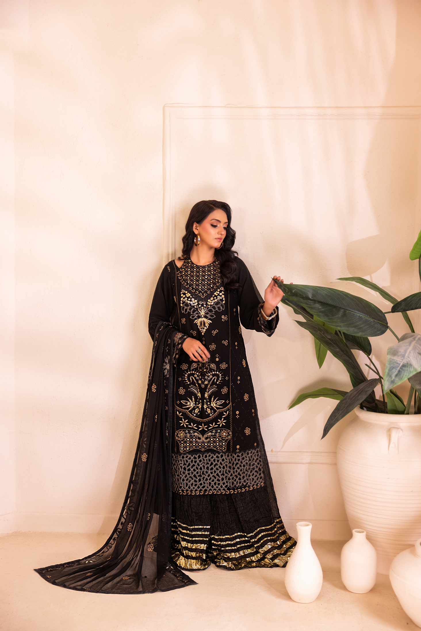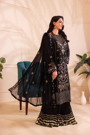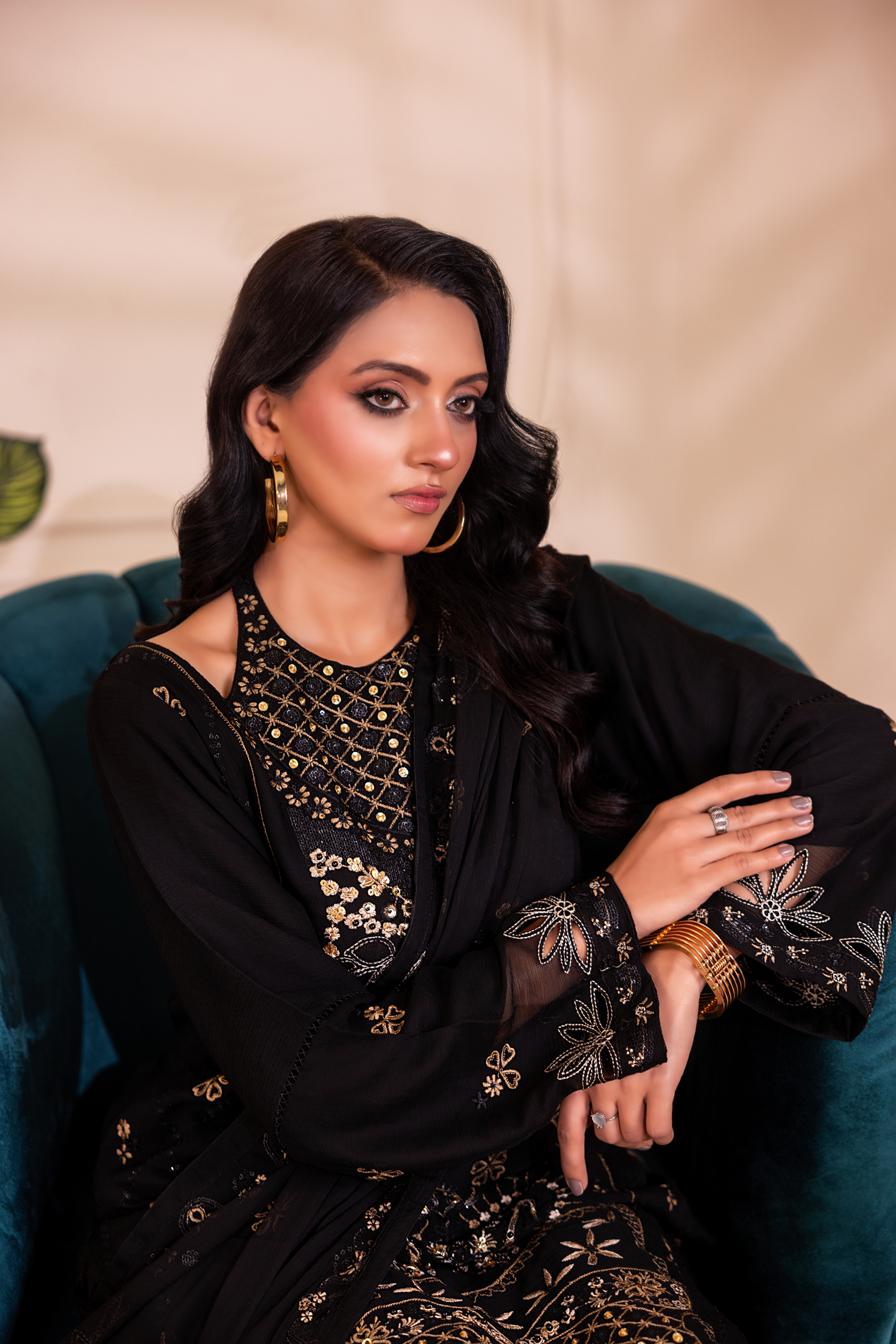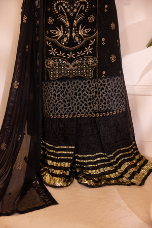 Chiffon Heavy Front Back Embroidery With Classy HandWork And Gota Work