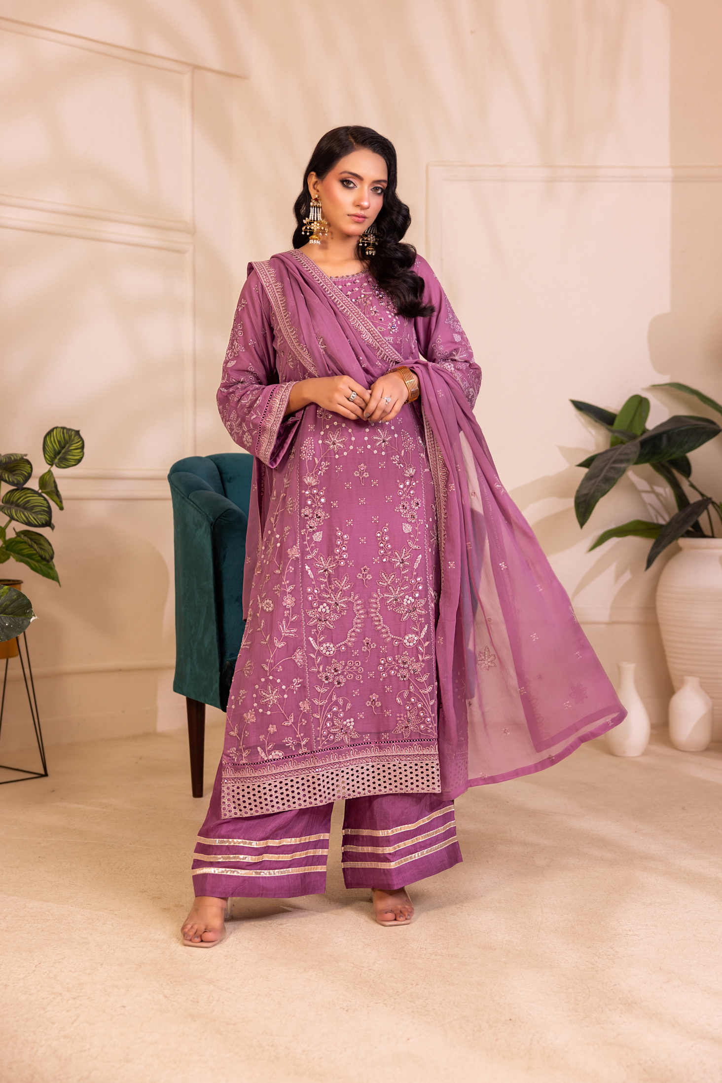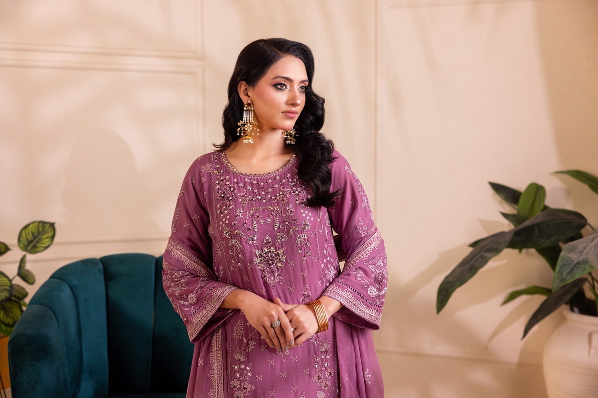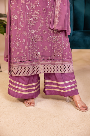 Chiffon Heavy Front Back Embroidery With Classy HandWork And Gota Work