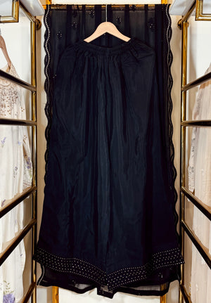 Whispered Teal captures serene elegance through a rich teal blue palette elevated with intricate embroidery. The delicately detailed kurta is paired with flowing trousers and a matching dupatta, creating a refined silhouette ideal for festive and semi-formal occasions.