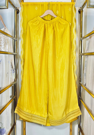 Whispered Teal captures serene elegance through a rich teal blue palette elevated with intricate embroidery. The delicately detailed kurta is paired with flowing trousers and a matching dupatta, creating a refined silhouette ideal for festive and semi-formal occasions.