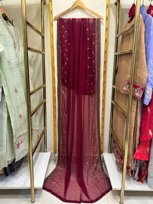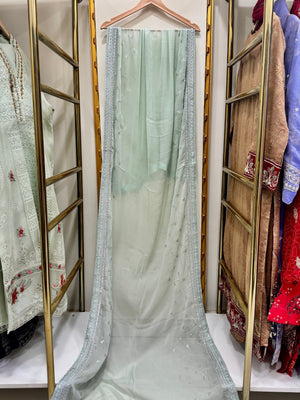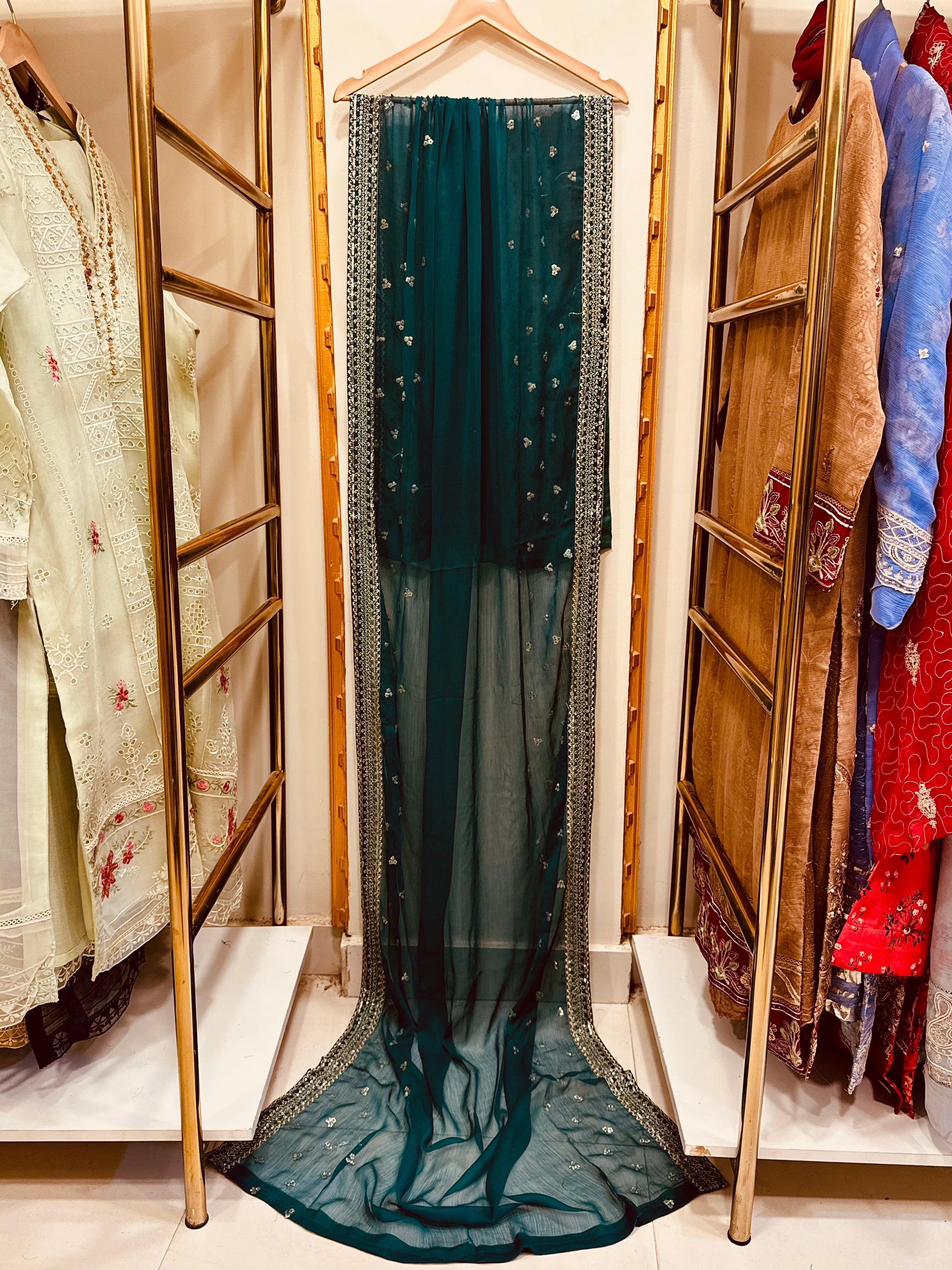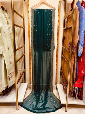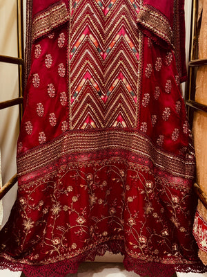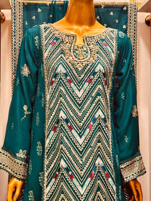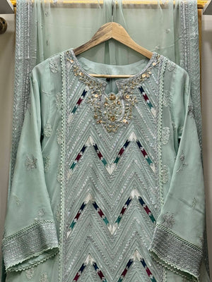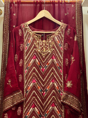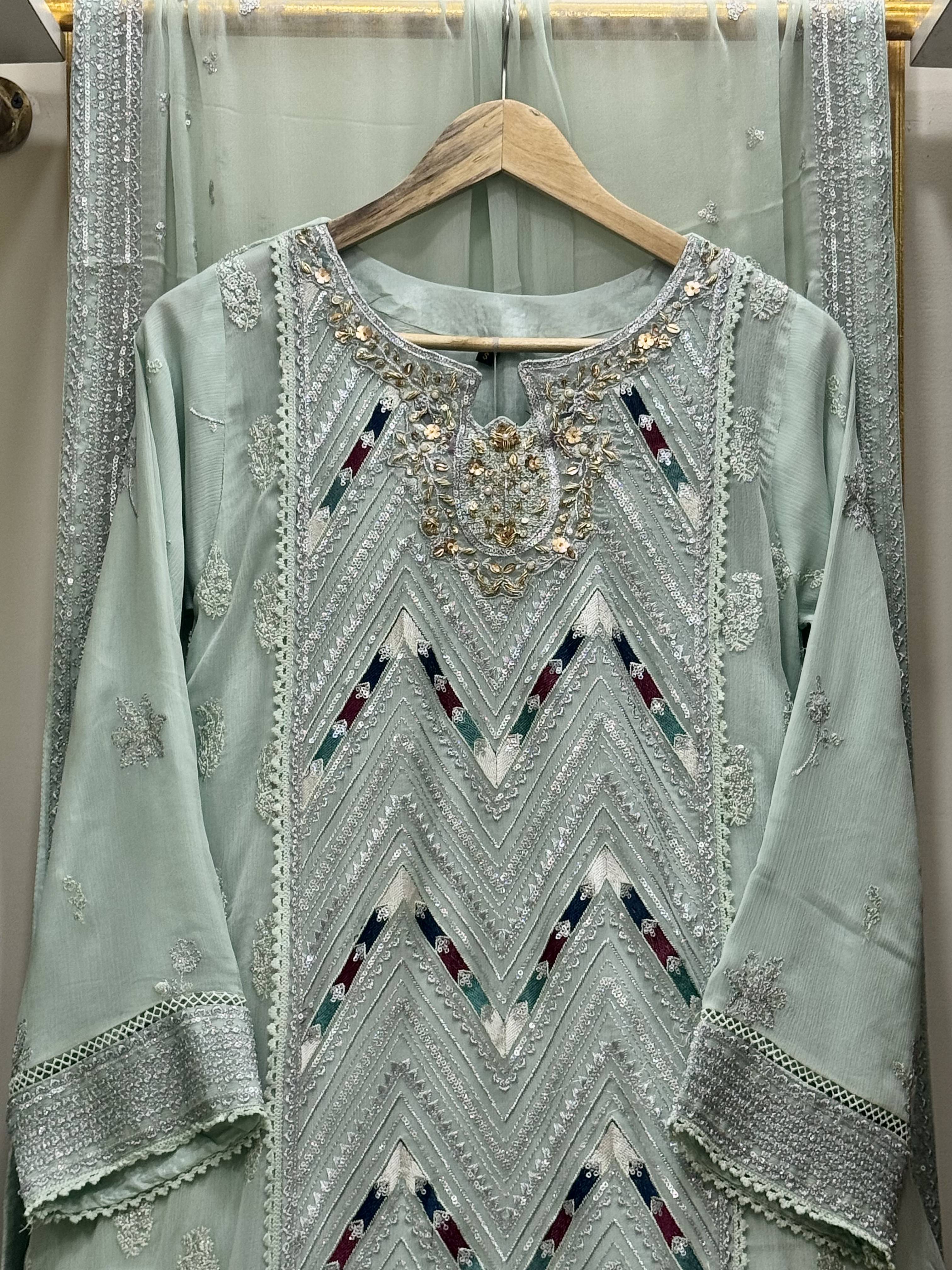 Unveil elegance with our latest Chiffon Gown 3 Piece — designed with luxury embroidery, premium fabric, and timeless style. Perfect for weddings, festive wear, and formal occasions.